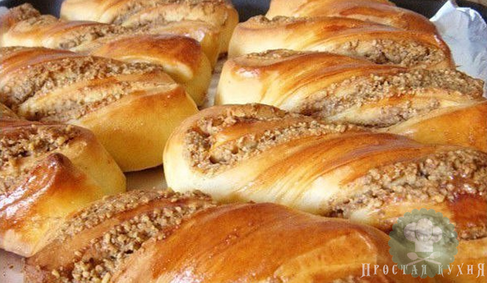 Мягкие и пышный булочки за 25 минут с ореховой начинкой