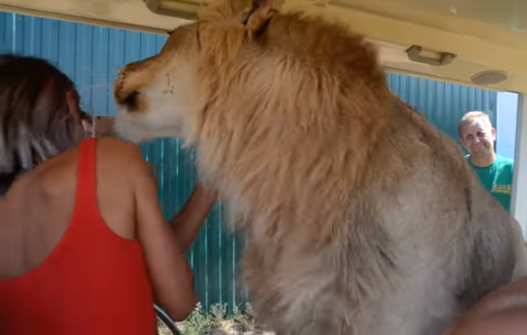 ВИДЕО: в крымском сафари-парке лев полез обниматься к туристам