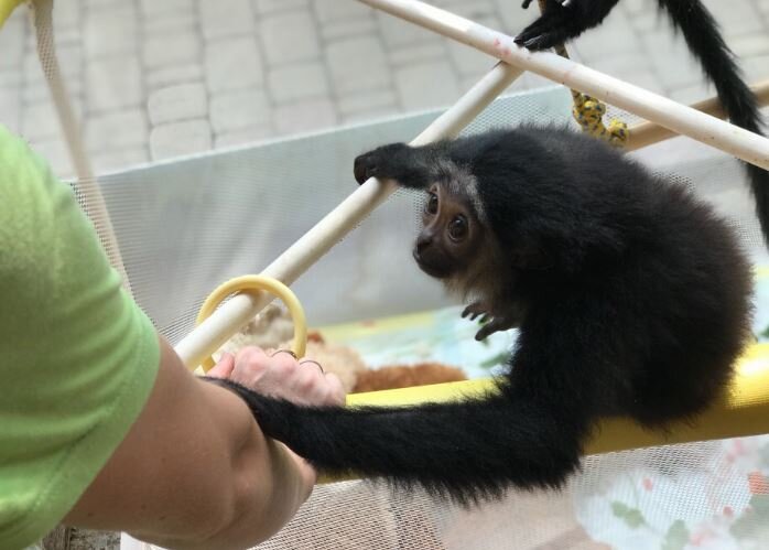 В «Сафари-парке» Геленджика гиббона Дарину переселили в ясли. Данный чернорукий гиббон занесен в Красную книгу. В России эти обезьяны проживают только в сафари-парке Геленджика и Московском зоопарке. Дарина родилась в ноябре 2017 года, однако мать отказалась ее принять. Малые человекообразные обезьяны отвыкают от молока только в возрасте от 1,5 до двух лет, потому гиббона перевели в ясли для животных. Вместе с Дариной в ясли ходит мангобей Микки, родившийся в октябре 2017 года. Родичи уделяли ему слишком много внимания и даже дрались из-за него. Ветеринары решили взять воспитательный процесс в свои руки и также перевели его в ясли.