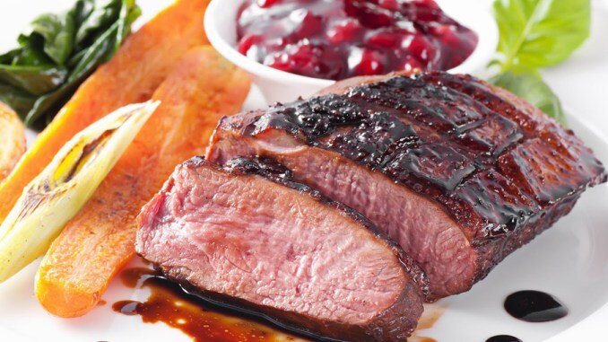 Описание: Для современного человека дичь стала редкостью и деликатесом, хотя в средние века, на столах рыцарей и вельмож можно было встретить в изобилии любую дичь — косулю, фазана, жареных куропаток и мясо диких кабанов. Сейчас же изысканное жаркое из косули подают в дорогих ресторанах, но можно его приготовить в домашних условиях. Основным ингредиентом будет мясо косули — лучше всего для этого брать окорок. А для приготовления соуса понадобится мята и базилик. Обычно мясо косули и любой другой дичи перед приготовлением вымачивают, что бы уничтожить характерный для дичи запах. Но в этом рецепте замачивать мясо предварительно не нужно. Здесь есть другая хитрость — мята. Она, как и лимон, кардамон и барбарис служит кулинарной отдушкой — убирает неприятный запах дичи, тинной рыбы и не домашней птицы. Для приготовления блюда потребуется: При приготовлении косули очень важно правильно потушить мясо, лук и морковь сделают его мягким и сочным, а тушение на подушке из лука позволит избежать