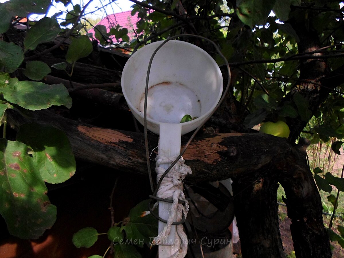 А было у меня следующее: пластмассовый ковшик, палка, кусок проволоки, веревка.