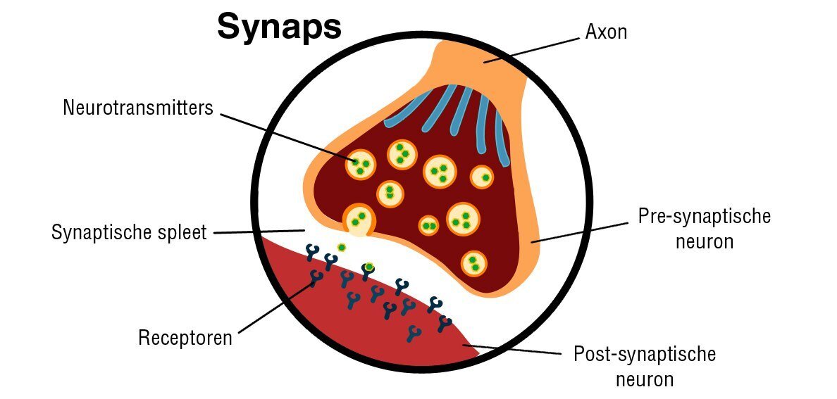 От клетки к клетке сигнал передаётся способом, который схемотехнику не приснится в кошмарном сне. Место контакта нейронов — синапс: пресинаптическая мембрана (клетки-передатчика), постсинаптическая мембрана (клетки-приёмника) и щель между ними шириной около 20 нм. Когда в нервное окончание прибывает очередной импульс, пресинаптическая мембрана деполяризуется и становится проницаемой для ионов кальция. Их вхождение запускает следующий этап. К пресинаптической мембране изнутри причаливают пузырьки со специальным веществом — нейромедиатором. (Иногда эти вещества ещё называют нейротрансмиттерами.) Пузырьки открываются наружу, и медиатор выплёскивается в синаптическую щель. А на постсинаптической мембране есть рецепторы, на которые садятся молекулы медиатора. После этого уже в постсинаптической мембране открываются каналы, и она деполяризуется или гиперполяризуется — смотря по тому, какие каналы. В возбуждающих синапсах открываются калиевые и натриевые каналы, так что ионы натрия входят в клетку, а ионы натрия выходят — мембрана деполяризуется. В тормозных синапсах открываются каналы для ионов калия и хлора, что приводит к гиперполяризации. Диффузия медиатора через синаптическую щель занимает около 0,5 мс.