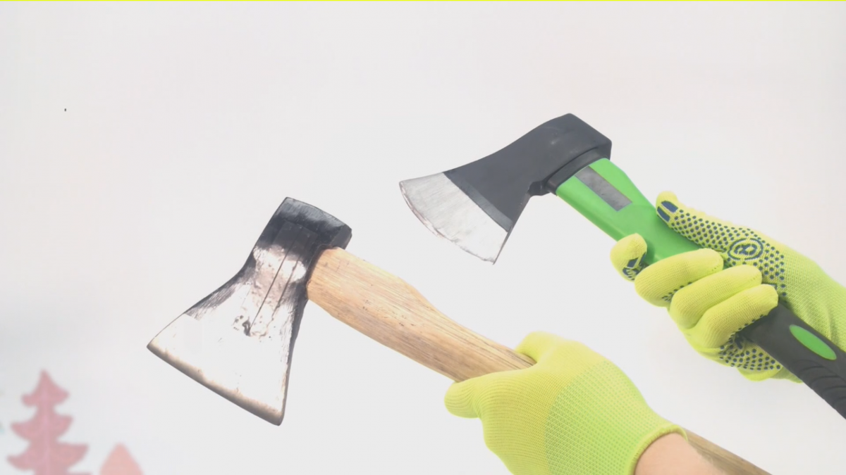 Как правильно держать, рубить и ухаживать. Есть два вида топоров. Топор с пластиковым топорищем более долговечен в использовании. Кроме того, прорезиненная часть не даёт руке скользить во время использования. Таким топором можно рубить под разными углами. Топор с деревянной ручкой менее долговечен, к тому же он более скользкий, поэтому держать его следует крепче. Его главное достоинство в том, деревянная ручка легче, чем у топоров с пластиковым топорищем. Рубить нужно под углом 45 °C. Приближаясь к середине, нужно уменьшать расстояние между срубами. С помощью топора можно сделать колышки и расколоть любой брус. Если брус не раскололся с первого раза, нужно перевернуть топор, с силой ударив его о твёрдую поверхность, а затем снова попытаться расколоть брус. Раскалывать брус нужно по направлению волокон. Деревянное топорище может рассохнуться, и тогда полотно разболтается. В этом случае понадобится ремонт. Для этого нужно взять киянку и «забить» полотно обратно в топорище. Затем по