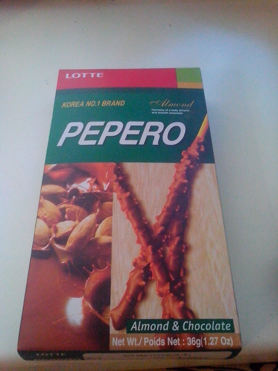 Ну вот если скажу, что это "соломка в шоколадной глазури с миндалем" то разве сильно понятно будет? И да и нет. Попробуем разобраться :) Данное лакомство выпускается компанией Lotte. Той самой, что выпускает знаменитый Choco Pie, разливает вкусные милкисы, и строит элитные отели. Корейские конгломераты всегда славились своей многопрофильностью. Pepero - импортный товар. Производят его в Сеуле, а нам лишь импортируют. Увы, но пока нигде кроме сети "Ашан" я эту вкусноту не встречал. Распаковываем товар: Стоит Pepero - 50 рублей. В упаковке как правило 10 палочек (на вкус как печенье), щедро покрытых нежным шоколадной глазурью вперемешку с миндал