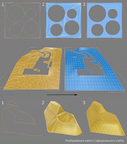 Populate:Terrain — это полезный бесплатный скрипт для улучшения сетки модели ландшафта. Он способен плохую сетку, сделанную в 3ds Max или импортированную из других программ, превратить в сетку из аккуратных прямоугольных полигонов. Результат работы виден на изображениях.