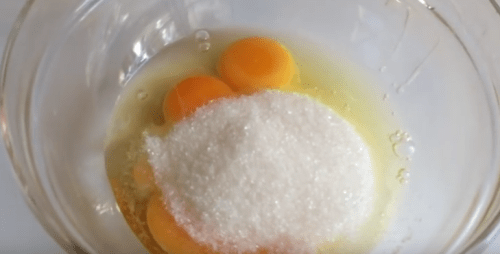 Муку просейте, чтобы насытить ее кислородом. Во взбитые яйца всыпьте ванильный сахар и частями вводите муку, взбивая миксером. Это будет основа для крема.