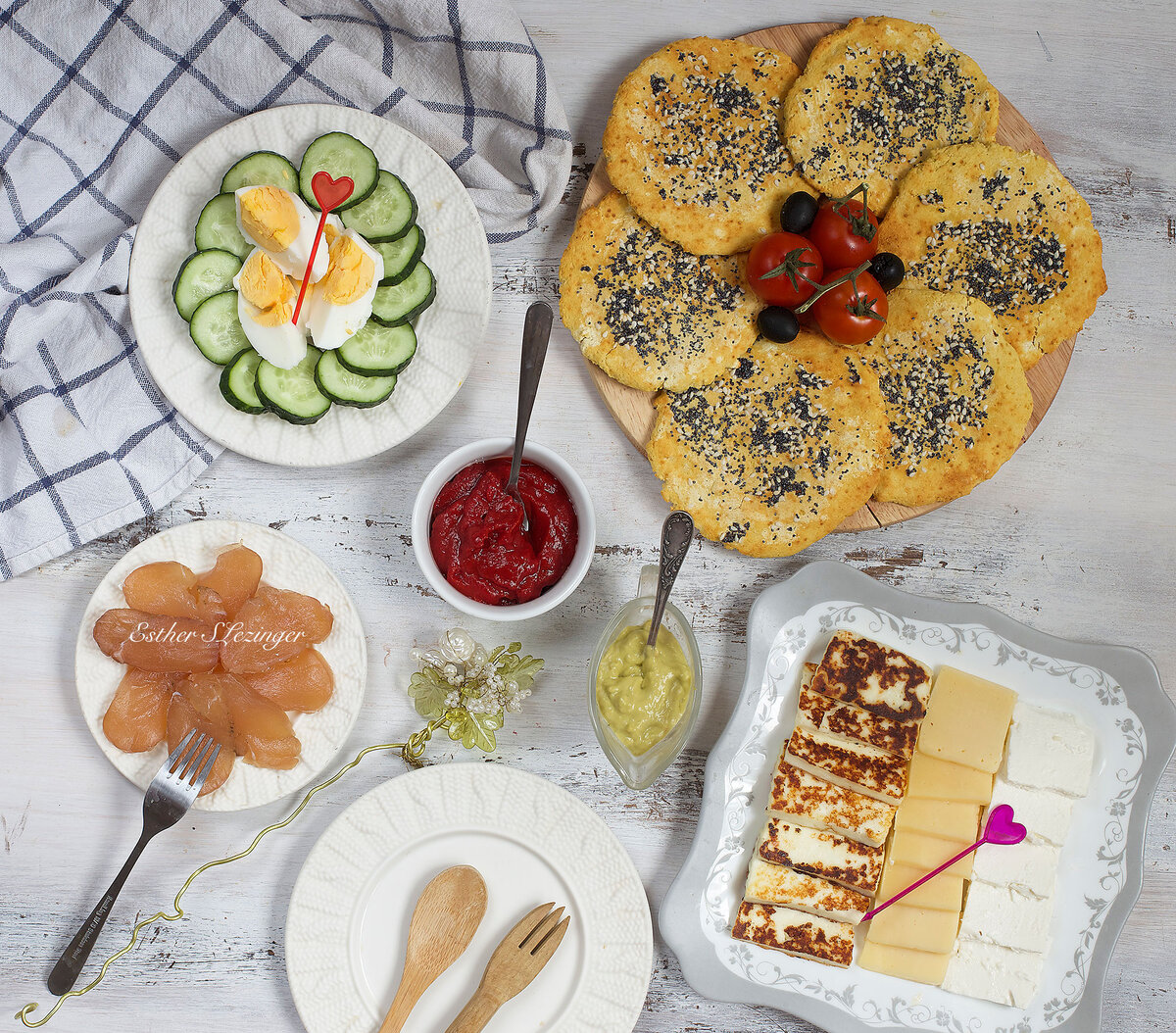 Рецепт очень простой: необходимо смешать муку с яйцом, посолить, добавить разрыхлитель, вливать кефир, замешивая тесто, оно должно получится довольно густым, чтобы можно было слепить лепешки. Разделить тесто на 6 равных частей, выложить их на силиконовый коврик, придать форму лепешек. В небольшой пиале смешать оливковое масло с маком и кунжутом и этой смесью смазать лепешки. Отправить их в разогретую до 180 гр