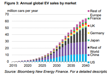 В докладе Всемирного экономического форума, используя данные статистики и анализа развития отраслей, приходят к выводу, что мы находимся в начале революции мобильности и энергетики. К 2040 году более половины новых автомобилей, проданных в мире, будут электромобилями, с 70% доли рынка в Европе, и более 50% в Китае.