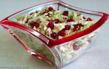 Кисло-сладкий салат из курицы и граната – это нежное, диетическое соединение, которое придется по вкусу каждому второму. Предлагаем вам воспользоваться нашим рецептом и быть может именно он станет самым главным блюдом на вашем праздничном столе. Для приготовления салата вам понадобится: Приготовление: Во-первых, яйцо отварить до готовности, очистить и нарезать кубиком. Во-вторых, мясо отварить и нарезать кубиком и обратно уложить в бульон. В-третьих, ананасы измельчить и смешать с кукурузой. В-четвертых, из граната отделить зерна. В подготовленные креманки уложить слоями ингредиенты. Верхушку салата смазать вашим любимым соусом и украсить зернами граната. Рецепт на нашем сайте: Салат с курицей и кукурузой Если вам понравилась статья, пожалуйста, поставьте Лайк! Подписывайтесь на наш канал и читайте ежедневно новые статьи, блоги и темы. Наши страницы ВКонтакте и Facebook. Там так же много интересного! А на нашем сайте Лучший повар можно найти массу рецептов. Заходите! Некоторые изобра