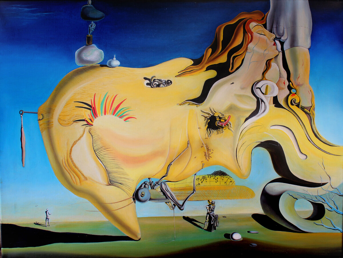 Картина «Великий мастурбатор», написанная одним из самых противоречивых и гениальных художников прошлого - Сальвадором Дали, на первый взгляд довольно сумбурна и непонятна, как многие его произведения. Но если приглядеться мы заметим два профиля: мужской и женский. Мужской, являющийся центром композиции, изображён крупным планом и смотрит вниз. Нос касается земли и отбрасывает тень. Справа же в верхнем углу женщина, отдаленно напоминающая музу Дали - Галу. Ее лицо приближено к мужским гениталиям, расположенным на обрезанной нижней части тела мужчины.