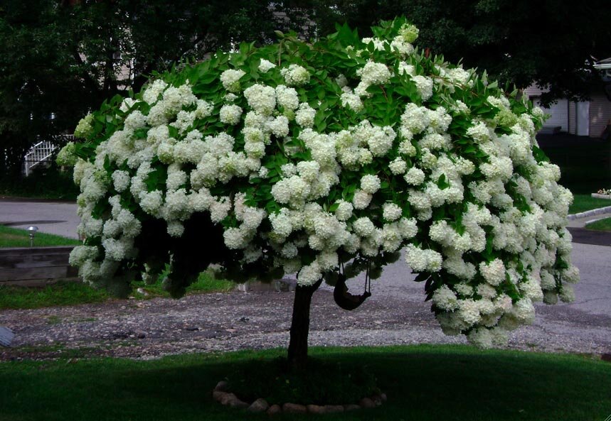 Гортензия — одно из самых красивых растений в моём саду. Её пышные соцветия на штамбе, словно маленькое деревце, украшают участок и притягивают взгляды. Но чтобы вырастить такую красоту, нужно знать несколько хитростей. Делюсь своими секретами, которые помогут вам создать великолепную штамбовую гортензию! Для штамбовой гортензии важно правильно посадить саженец. Я выбираю здоровый саженец древовидной или метельчатой гортензии, так как эти виды лучше всего подходят для формирования штамба. Заглублять саженец не нужно — корневая шейка должна остаться на уровне почвы. Сажаю на солнечном или слегка затенённом участке с рыхлой, плодородной почвой (pH 5.5–6.5). После посадки обильно поливаю, чтобы корни быстрее прижились. Чтобы вырастить штамб, я выбираю самый крепкий и прямой побег саженца. Остальные побеги удаляю, чтобы растение направило силы на главный ствол. Летом, когда на главном побеге появляются новые боковые веточки, я их прищипываю 1–2 раза за сезон. Это помогает стволу утолщат