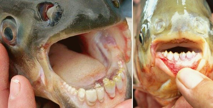 Амазонка, расположенная в Южной Америке, претендует на самую протяженную реку в мире - почти 7 тысяч километров. Специалисты насчитывают до 4 тысяч видов рыб, обитающих в ее бассейне. Огромная протяженность и тропический климат обусловили удивительное многообразие подводного мира. Представляем вам обзор самых страшных рыб, обитающих в Амазонке. Это настоящие чудовища подводного мира. Бурый Паку Водное позвоночное животное с человеческими зубами. Происходит из семейства пираньевидных. Достигает метра в длину. Зубами она может расколоть орех. Если обычные рыбы вонзают свои острые зубы в добычу и размалывают ее - этот хищник откусывает кусками. Кстати, такую рыбку можно завести у себя в аквариуме. Рыба Вампир или скумбриевидный гидролик В 96 году был зафиксирован рекорд ловли 17,8 килограммовой особи. Рыбы способны заглотить целиком жертву, которая лишь в половину меньше их самих. Кстати, питаются они абсолютно всем, что меньше их - даже пираньями и себеподобными. Это самые трудноловимые