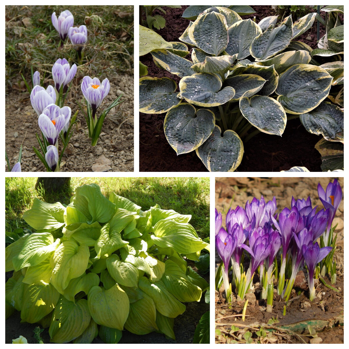 Что общего между крокусами и хостами? На первый взгляд ничего. Они совершенно не похожи, и даже растут в разное время. Но как раз этот момент может объединить такие разные растения. Приближается время посадки крокусов и я советую разместить их вокруг хост на расстоянии примерно 20-3о сантиметров от центра хосты в зависимости от её размера. Весной крокусы успеют вырасти и полностью отцвести до того, как появятся первые листья хост. Затем хосты прекрасно защитят их как от сорняков, так и от случайной перекопки из-за каких-то изменений в цветнике. А главное, экономится место и уже не надо думать о том, какие цветы смогут расти там так, чтобы не мешать летом маленьким луковичкам крокусов. Так я рассаживаю крокусы уже два года, а этой осенью собираюсь разместить их вокруг хост в обновлённом цветнике. Хорошо так же сажать крокусы рядом с карликовыми хвойными - весной они прекрасно смотрятся на фоне зелёных иголочек, а после цветения так же не мешают другим растениям. Желаю вам удачных по