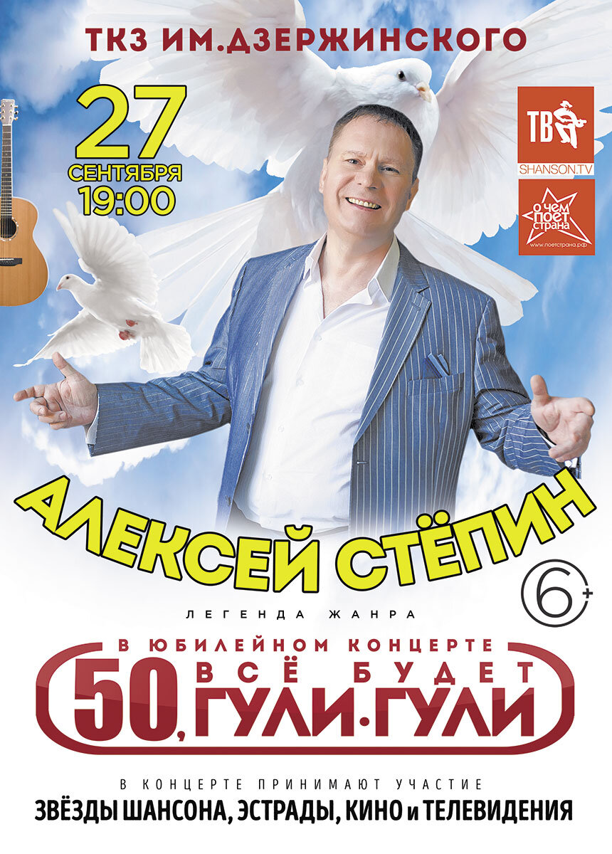 Афиша для шансонье Алексея Стёпина к юбилейному концерту "50, всё будет Гули-Гули".