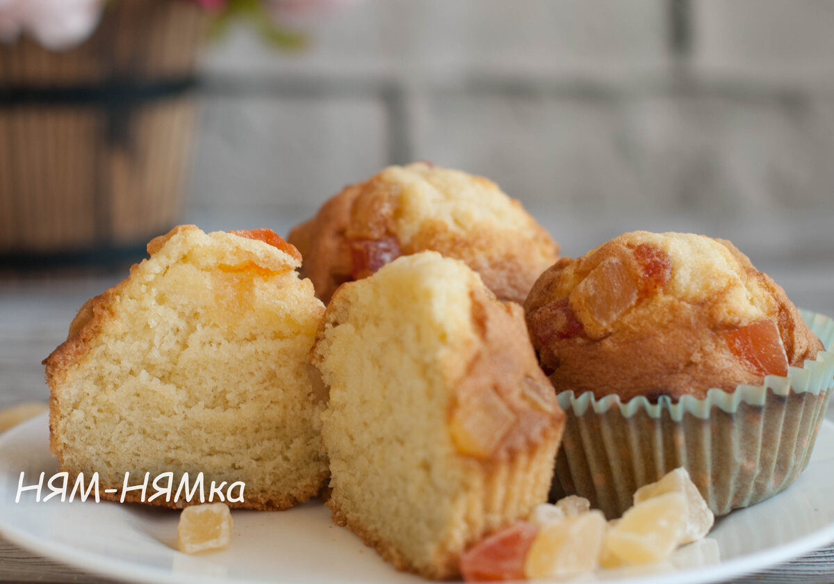 Это пышные и сладкие кексы хороши своей необычной текстурой. Они очень мягкие и нежные, но при этом усыпаны хрустящими цукатами. Очень необычно!