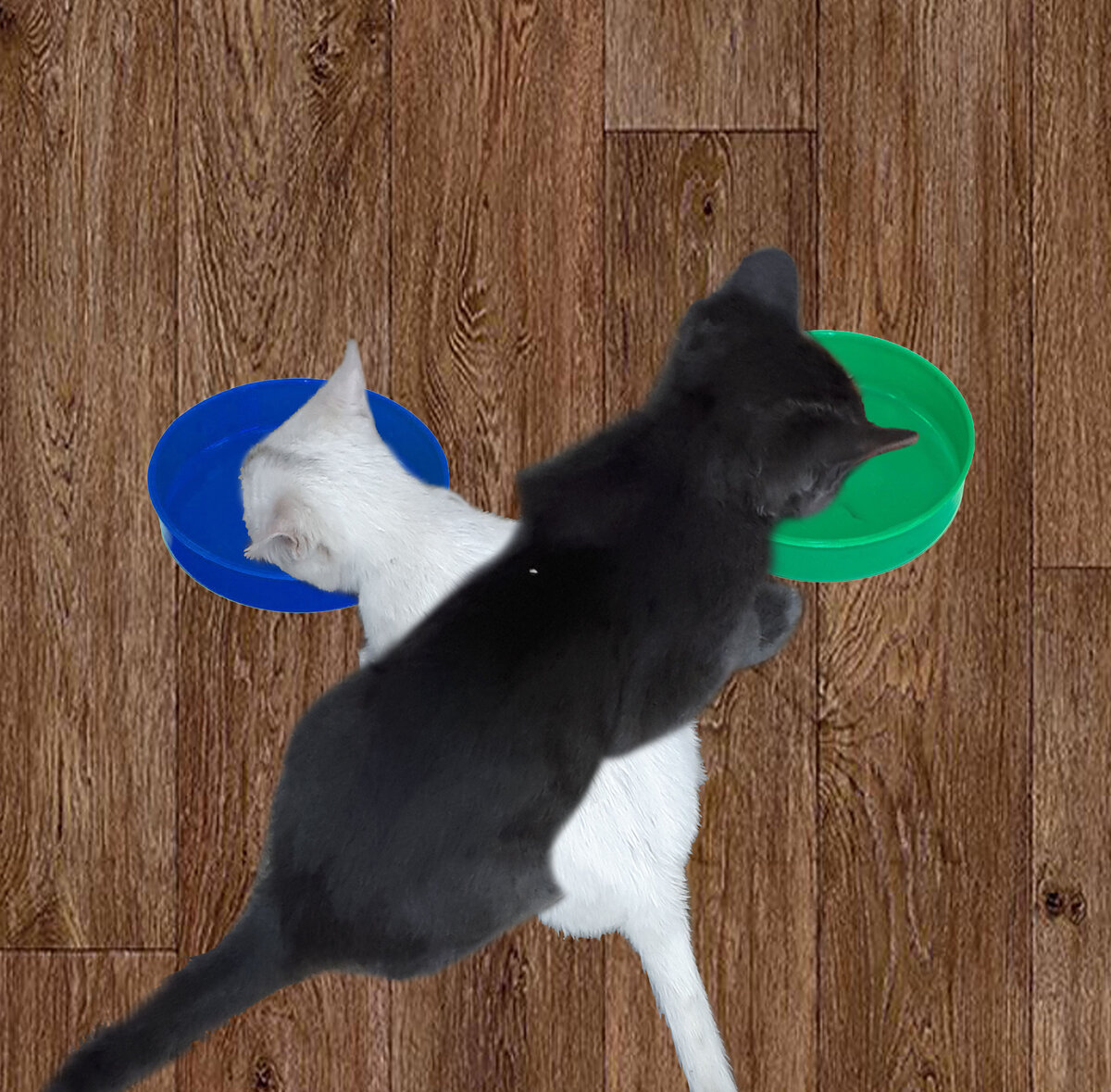 Без Пискли в доме стало как-то немножко пусто и непривычно тихо, как будто радио сломалось. Все ходили удивлённые и заглядывали под стулья. Особенно маялся Стёпа: мы-то хотя бы знали, куда его сестра делась, а для него кошка просто пропала. Не то, чтобы он сильно страдал, бился головой о стенки или делал попытки суицида, но явно чувствовал себя не в своей тарелке. И, собственно, как раз о тарелке. Я впопыхах перепутала и отдала его миску в качестве приданого Пискле. Мы и раньше замечали, что котята едят всегда из одной и той же миски. Степа из зелёной, Пискля из синей. Ну не было розовой! Хотя вообще-то учёные утверждают, что коты видят мир чёрно-белым, так что миски в их глаза должны были различаться разве что оттенком – и то не факт. Однако ж различали! Стёпа ел у стенки, Пискля у двери. Это когда миски стояли правильно. Но иной раз после мытья я ставила их наоборот и тогда мы получали забавный эффект: по команде «Газы!» (зачёркнуто) «ЖРАТЬ!» котята наперегонки вбегали в кухню, подл