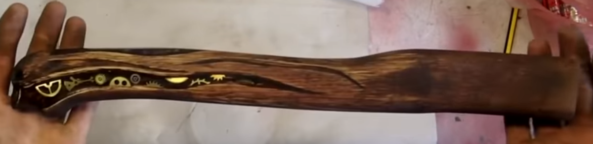 Чтобы сделать такой топорик вам нужно топорище и такая рессорная сталь Для начала делаем зарисовки своего будущего топора Чтобы достичь нужной толщины и формы рессору расплавляют в печи После этого необходимая форма выпиливается болгаркой Далее берется часть водопроводной трубы диаметром 36 мм внутри и снаружи 43мм и придается прямоугольная форма , для этого её раскаляют в печи и с помощью тисков придают форму Далее труба приваривается к топору сваркой Остаток рессоры используется по типу клыка, который крепится с другой стороны при помощи сварки , форма клыка может быть произвольная. В клыке снимаются фаски под 45 градусов наждачным кругом Затем карандашом намечаются части трубы, которые нужно спилить После спиливания , швы подчищаются болгаркой, чтобы выглядело все более гладко, затем также чистится и вся поверхность топорика В качестве надежного каркаса для топора выпиливаются две металлические детали Чтобы они точно повторили форму прихватываем их с помощью сварки После чего нагрев