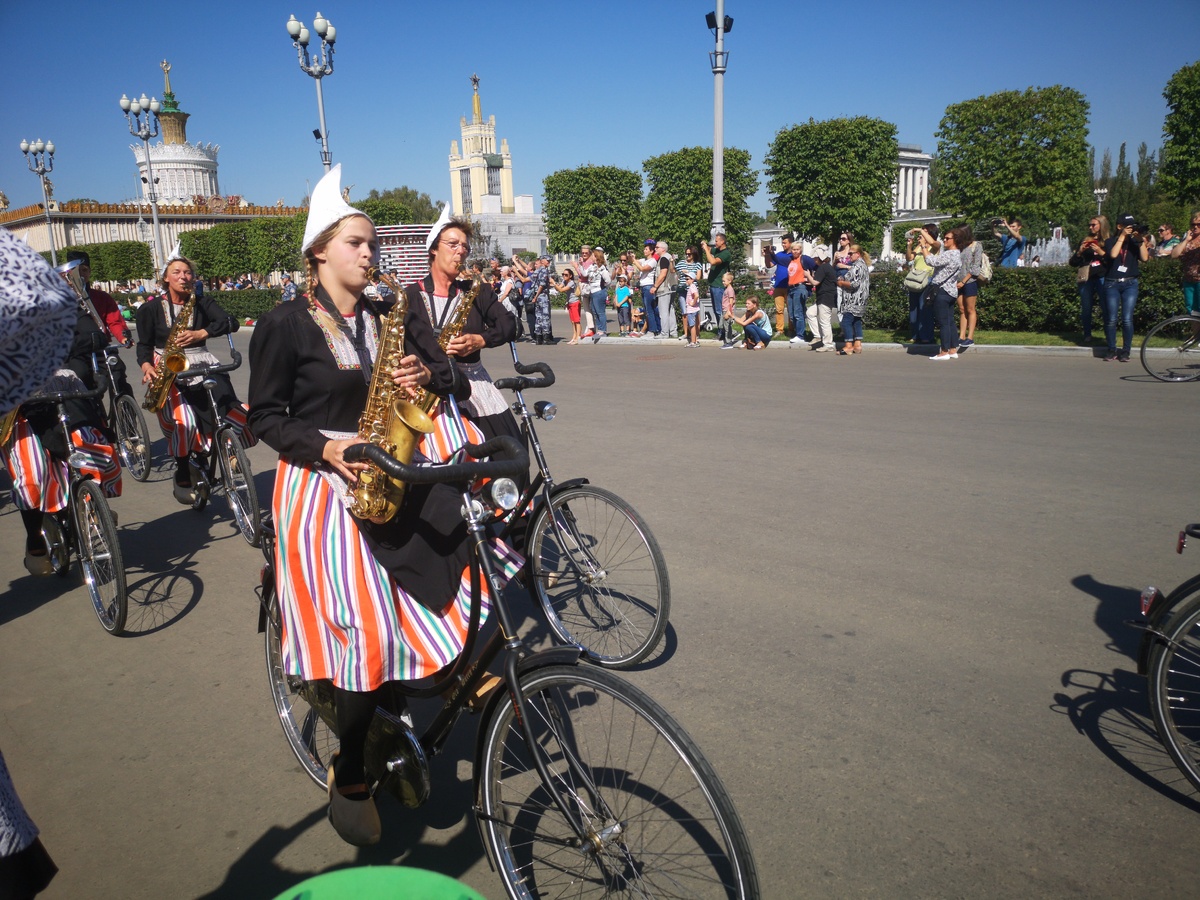 Оркестр на велосипедах «Крещендо» ВДНХ Шествие участников Спасская Башня 2018 видеоролик от нашего портала