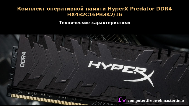 Комплект оперативной памяти HyperX Predator DDR4 HX432C16PB3K2/16. Технические характеристики. Комплект оперативной памяти HyperX Predator DDR4 HX432C16PB3K2/16 состоит из двух одноранговых модулей UDIMM небуферизованной памяти с двумя профилями разгона XMP. Данный комплект есть в списке оперативной памяти HyperX, протестированной на совместимость с процессорами Ryzen.