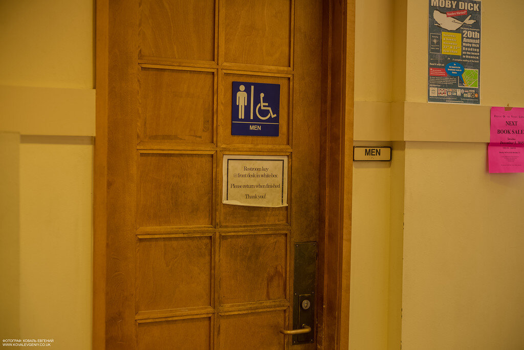 Сегодня у нас туалеты в библиотеках. Библиотека Венис-Эббот Кинни (Venice-Abbot Kinney Memorial Library) в районе Венис-Бич города Лос-Анджелес в штате Калифорния.