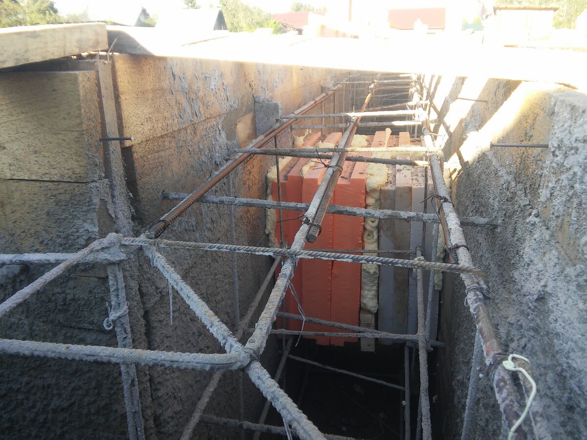 Здравствуйте, дорогой читатель! Ссылка на первую часть. В данной статье я продолжу рассказ как правильно залить фундамент своими руками так, чтобы не подвела опалубка Рассмотрим ПРОДОЛЖЕНИЕ ПОРЯДКА РАБОТ. Более наглядно, как и обещал, показываю устройство отверстий в фундаменте. Технические отверстия большого сечения, окна и двери в фундаменте проще и дешевле всего сделать из любого плотного пеноматериала когда уже установлена арматура. Для этого просто вырезаем в нужном месте проем в арматуре, вставляем листы нужного размера, послойно скрепляя их между собой и к опалубке. Для этого подойдет гвоздь от 120 мм. После заливки такие листы легко достаются. Круглые отверстия небольшого диаметра проще всего сделать из пластиковой трубы. Далее необходимо хорошенько закрепить опалубку и выставить её в уровень. Закреплять опалубку следует стяжками. Для этого в вертикальной доске сверлятся отверстия, через них насквозь пропускается спица. Варианта два, это либо кусок арматуры нужной длинны диа