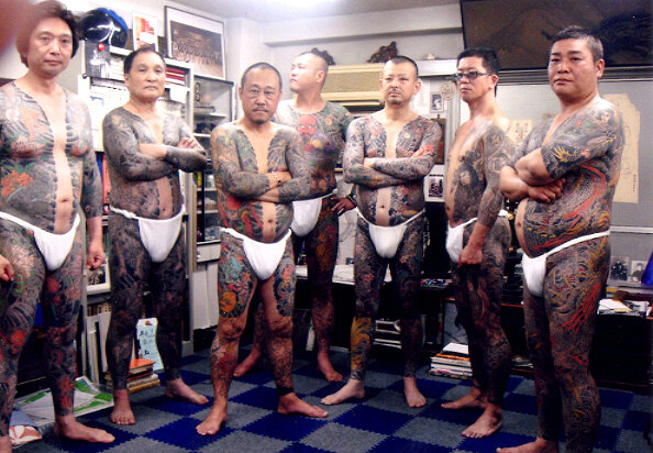 Помимо самураев, служащих своим дайме (старшим самураям), в Японии существовали и вольные самураи – ронины, относившиеся к деклассированным элементам. В ронины попадали и самураи, не сумевшие уберечь своего хозяина от смерти. Из ронинов и образовалась нынешняя японская мафия – Якудза. Но стать членом Якудзы непросто – прежде надо пройти обряд инициации. При инициации посвящаемый в присутствии всех членов банды садится напротив своего будущего покровителя, из старших членов банды. Обряд заключается в распитии саке (рисовой водки), после чего считается, что разорвана связь новичка с родителями, семью ему теперь заменяет якудза, а отца – сидящий против него покровитель. Но это еще не все – некогда новичку по ходу обряда инициации обрезали фалангу мизинца. Теперь члена банды уродуют только за провинности, по одной фаланге за каждый проступок. В Японии все знают, что отсутствие фаланги пальца у человека – признак его принадлежности к преступному миру. Татуировка – своего рода паспорт и опо
