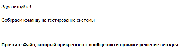 Пришло письмо ответ, шло достаточно долго.. Начало описано тут Набирают на тестирование какой-то системы, ну чтож давайте посмотрим что это за система такая, открываем прикрепленный файл И переходим на сайт О да мега работа с достатков в 1000$ в день и всего 3 места осталось стоит поторопиться... (НЕТ) Отзывы просто шик, я не знаю что меня больше умиляет люди по которым явно видно что они не по 1000$ в день зарабатывают или как они читают текст без всяких эмоций. Явно отзывы миллионеров сразу видно (НЕТ) Ну и в конце настоящий отзыв, к сожалению нашел только один но сайт существует всего 4 дня...