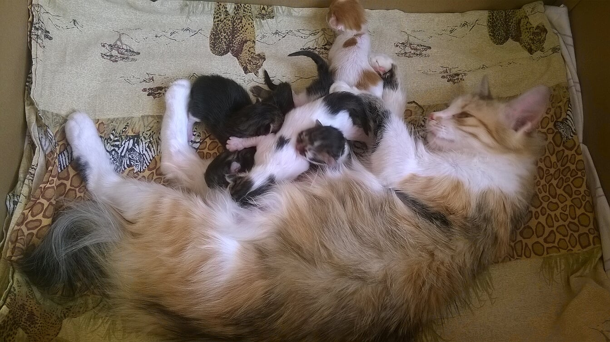 Всем привет! Моим малышам уже целых три дня! По человеческим меркам это уже больше месяца. Они хорошо кушают, так смешно чмокают! Растут понемногу. Мама с Папой решили посмотреть, кто же мои детки – мальчики или девочки. Начитались чего-то там в Интернете, нашли два метода определения, Папа даже одну фотку распечатал, чтобы сравнивать. И они пришли заглядывать малышне под хвосты. И тут началось! По одной методике получилось, что у меня 2 сыночка и 3 лапочки-дочки. А по другому способу наоборот – три девочки и 2 мальчика. Спорили (тихонько, чтобы их не напугать), чуть не поругались. Короче, к одному мнению не пришли. Решили ветеринара ждать – как к Ладе приедет (она болеет от старости), так и скажет точно. Может, вы понимаете в этом деле и можете что-то сказать по фото? А пока мы решили имена подбирать. 3 девчачих и 3 пацанячих для котиков. Это будут временные, домашние имена – потом новые хозяева придумают свои. Но нам-то тоже деток надо как-то называть, правда? А как зовут ваших