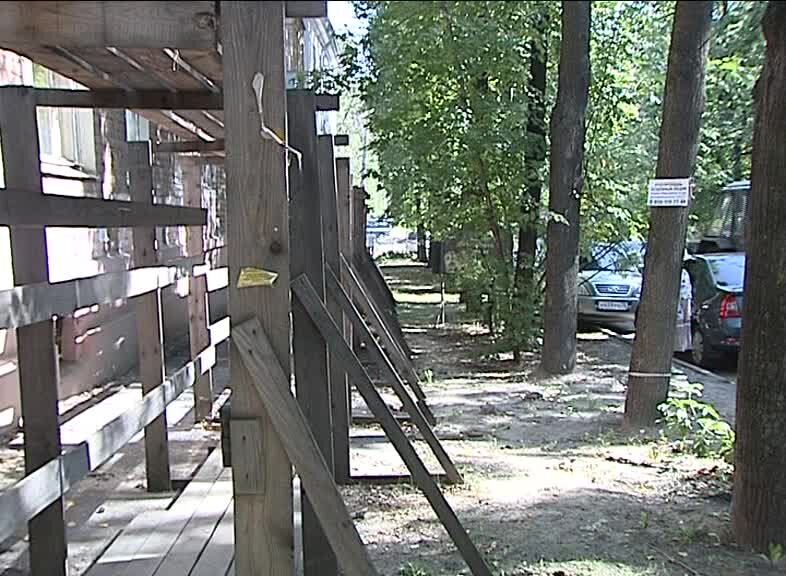 Ограждения, призванные обезопасить ярославцев, сами представляют угрозу для здоровья. В Народный контроль «Вестей» обратились люди, которые уже устали пробираться через деревянные конструкции вдоль домов по нескольку лет. Никита Мордовин продолжит. Как известно, нет ничего более постоянного, чем временное. Так можно сказать и о подобных конструкциях. И немногие решаются ступить на такой путь, ведь дерево за годы службы просто приходит в негодность. Только вот у Евгении Павловой выбора нет. На Рыбинской улице - детская поликлиника. И хочешь - не хочешь, а приходится лавировать между дырами в деревянном полу. «Вот уже два года ребенку. И все два года вот эта конструкция существует. Мы сейчас пересели на маленькую коляску, колеса проваливаются, застревают», - поделилась Евгения Павлова. Два года и этому объекту у дома на улице Салтыкова-Щедрина. - Конструкция вся шатается. Александр Смирнов рассказывает: и запинался, и подскальзывался. Теперь обходит стороной. Жильцы дома № 28 по Салты