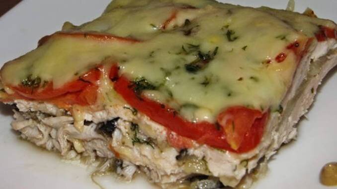 Сытная запеканка из курицы и овощей, приготовленная по этому простому рецепту, сразит всех своим отменным вкусом. Требующиеся продукты: Приготовление: 1) Нарезанные пластинами куриные грудки поперчите, посолите. Отложите, чтобы они немного промариновались. 2) Нарезанный четверть или полукольцами лук слегка обжарьте на любом масле (растительном, сливочном). 3) Кабачок порежьте на кружки около 0,7 сантиметра толщиной, очищенный картофель – на тонкие пластины. 4) Морковь и сыр пропустите через терку (в разные тарелки). Помидор порежьте не толстыми дольками. 5) Смажьте любым маслом дно формы. 6) Запеканку выложите слоями: — половина кабачков — сверху посыпьте их солью, перцем; — картофель — также сверху посолите, поперчите — курица — жареный лук — полейте маслом со сковороды, где он обжаривался — морковка — посолите, поперчите, смажьте половиной сметаны — снова кабачки — помидоры — посолите, поперчите, промажьте остальной сметаной. 7) Накройте запеканку фольгой. Поставьте в духовку (темп