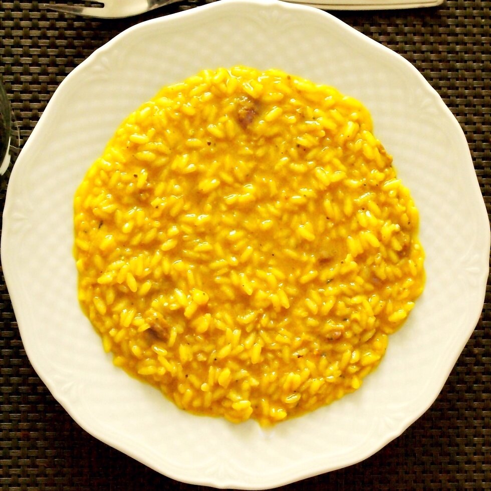 Предлагаю вам попробовать очень вкусное традиционное миланское блюдо, ризотто с добавлением шафрана, или желтое ризотто, как его часто называют в Италии. За счет шафрана ризотто действительно имеет яркий желтый цвет, что выглядит не только красиво, но и очень аппетитно, даже соблазнительно. Для приготовления лучше брать пестики шафрана, но если их трудно раздобыть (а даже в Италии это не всегда просто сделать), можно взять шафран в порошке. Что потребуется: рис – 320 г