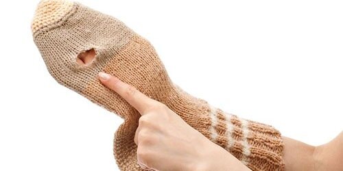 Исследователи из Бразилии собрали более 10 000 носков с дырками. Они попытались выяснить почему в носках появляются дырки. Большиство людей сказали бы, что они просто протираются, но ответ поразил даже самих учёных. Оказалось, что дырки появляются в тех местах, где со временем уменьшается количество ткани. А то каким образом эта ткань исчезает никто никак не мог понять. И вот проанализировав несколько тысяч дырявых носков. И плюс к ним ещё несколько тысяч новых носков, исследователи обнаружили уникальную зависимость, что оказалось трудно поверить в то, каким именно образом ткань исчезала из носков. Учёные заметили, что когда вечером после целого дня использования носков, ноги оказывались грязными. Помимо грязи на ногах учёные обнаружили присутствие и мелких частиц самих носков. Самое большое скопление ткани носков оказалось в пространстве между пальцами ног. Учёные пришли к выводу, что измерив количество отслоившейся ткани от носка, можно рассчитать точно до одной недели, когда в носк