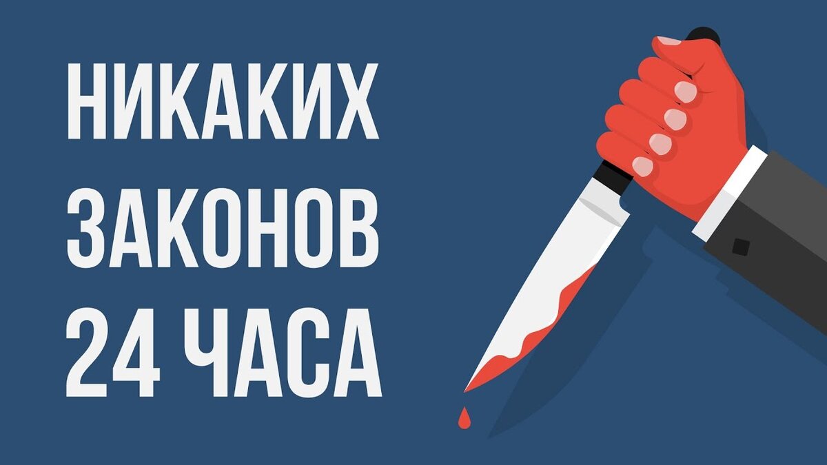Знаете ли вы, что в 1880 году дочь сиамского короля по имени Суанхе утонула на глазах у сотен людей, но никто не осмелился ей помочь, дело в том что по их законам, никто ни имел права дотрагиваться до представителей королевской семьи, поэтому им ничего не оставалось делать, кроме того как просто смотреть! А теперь представьте, что все законы перестанут действовать на 24 часа! Только в России действует 21 кодекс, в сумме которых насчитывается более 6500 статей, но теперь все они одновременно перестанут действовать. Если исчезнут все законы то в первый же час будет ограблен каждый магазин, банк и человек, ведь люди попытаются награбить столько, что-бы хватило на всю жизнь, людям придётся защищаться самостоятельно, из-за чего произойдут кучи перестрелок, сейчас за сутки происходит более 1500 тысяч убийств, сейчас же счёт пойдёт на миллионы. В мире появятся тысячи супер сирейных убийц, как Пётр Брзица за ночь убивший 1360 человек. Любой за просто сможет пристрелить или ограбить кого захоч