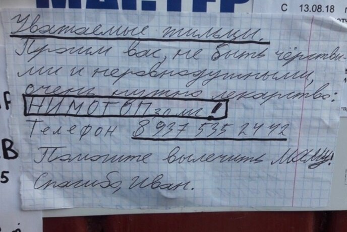 Недавно в российских СМИ обсуждали 12-летнего волгоградского мальчика, обклеившего "душераздирающими" объявлениями подъезды домов в поисках препарата «Нимотоп». По словам представителей местного Минздрава, женщина самовольно покинула больницу и сама себе назначила аналог лекарства, которое не поставляется в Россию из Германии более полугода. Ранее в СМИ появлялась информация, что врачи якобы не выписывают ей аналогов. Однако лечить такими препаратами можно только в условиях стационара, откуда пациентка самостоятельно ушла, отказавшись от госпитализации. Стоит отметить, что сам "Нимотоп" у женщины всё же был (в ампулах), но получать его инъекционно в условиях стационара она не захотела. А медикам даже пришлось уговаривать её остаться, но получили письменный отказ в ответ. — Меня ещё не выписали, но я ушла домой. Потому что там со мной нужно постоянно кому-нибудь находиться, а некому. Я сама даже передвигаться не могу. Если встану, то могу упасть. В глазах то троится, то четверится.