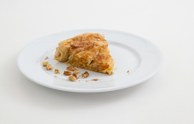 Ингредиенты Тыква 1 кг Тесто фило 500 г Сахар 200 г Молотая корица по вкусу Грецкие орехи 100 г Сливочное масло 200 г Яичный желток 1 штука 1. Тыкву очистить и натереть на крупной терке. Орехи мелко нарубить. 2. Выстелить лист фило на столе и смазать его растопленным сливочным маслом. Сверху положить еще один лист теста и смазать его маслом тоже. 3. Насыпать часть тертой тыквы на тесто, сверху немного орехов, корицы и сахара.
