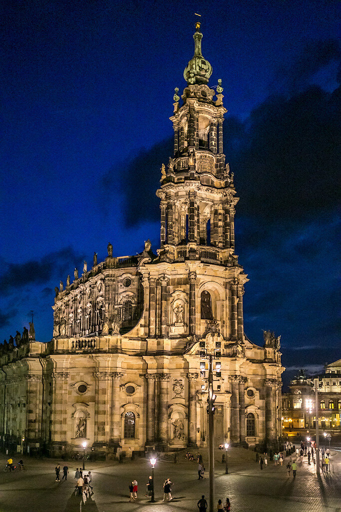 В 1697 году саксонский курфюрст Фридрих Август I Сильный в борьбе за польскую корону перешёл в католичество. При его сыне, Августе II, между 1738 и 1754 годами была построена церковь в стиле позднего барокко по эскизам итальянского архитектора Гаэтано Чиавери. Сегодня Hofkirche («придворная церковь») ‒ это кафедральный собор епархии Дрезден-Мейсен.