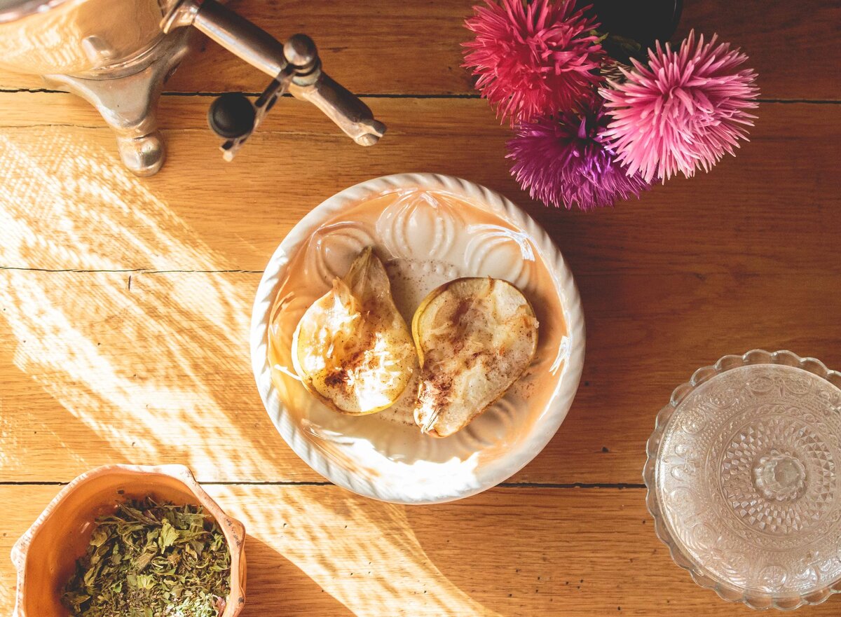 Ветки ломятся под тяжестью румяных груш. Оранжевыми фонариками из кустов мерцают тыквы. Гроздья винограда как яхонты горят... Время собирать сочные плоды. Слюнки потекли от этой красоты... Поделюсь простым рецептом Запечённой груши. Ингредиенты: 4 груши 50 г. мёда 40 г. сливочного сыра корица по вкусу масло на глаз Приготовление: Груши разрежьте пополам, очистите сердцевину. В получившееся углубление добавьте 1 ч. л. мёда, сверху посыпьте тёртым сыром. Смажьте форму для запекания небольшим количеством масла. Уложите груши на противень и отправляйте в духовку, разогретую до 200 °С. Выпекайте 20-30 минут. Готовые груши полейте, выделившимся сиропом, посыпьте корицей. Угощение готово!