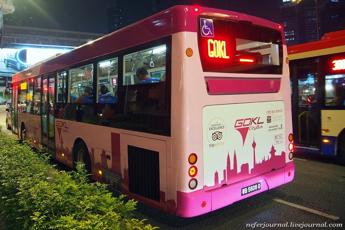 Маршруты называются GOKL City Bus. Их несколько: Relax, Work, Sightsee, Shopping. Интервал движения - каждые 10 минут. Автобусы курсируют по городу, охватывая популярные достопримечательности: башни Петронас, телебашня, Чайна-таун и другие. В салоне есть кондиционер и WiFi. Мотайте на ус.