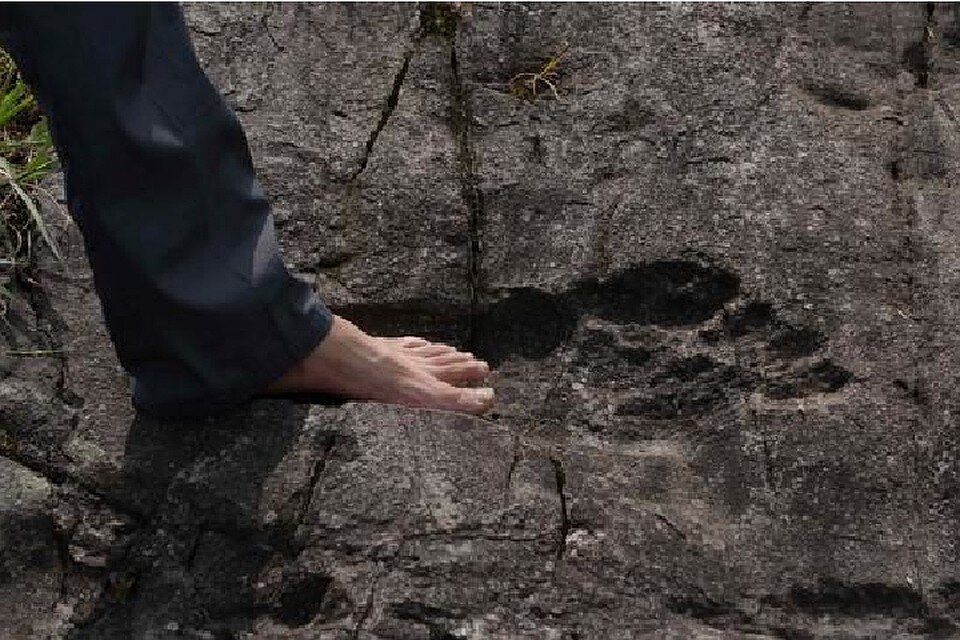 Еще одно доказательство обитания гигантов в древности нашей Земли найдены не так давно в Китае. Как информирует Sina - агентство Китая, не так далеко от села Пинъянь в провинции Гуйчжоу на юго-западе Китая нашли огромные застывшие отпечатки. Всего было обнаружено двое отпечатков: чёткий —громадная стопа осталась почти полностью, другой — «смазан». Отпечатки вовсе не имеют отличий от человеческих, если не считать того, что стопа на 60 сантиметров больше, а это почти в 2,5 раза огромнее. По мнениям специалистов, гигант, который оставил отпечатки, был ростом от 5 до 6 метров. Вероятно, что гигант прошелся по глине, где остались его отпечатки, далее их высушило солнцем и спустя века то, что было глинистой почвой, оказалось твёрдой породой, оставившей для нас уникальные следы человекообразной особи. Кстати, это не первое открытие отпечатков гиганта. Самый знаменитый и впечатляющий след ступни находится в Африке, где размер отпечатка равен 1 метру 28 сантиметрам.