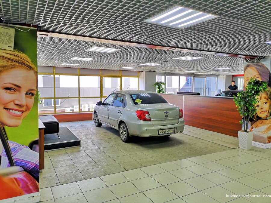 Кружок вокруг автосалона или кружок на 6-м этаже парковки - в зависимости от погоды.