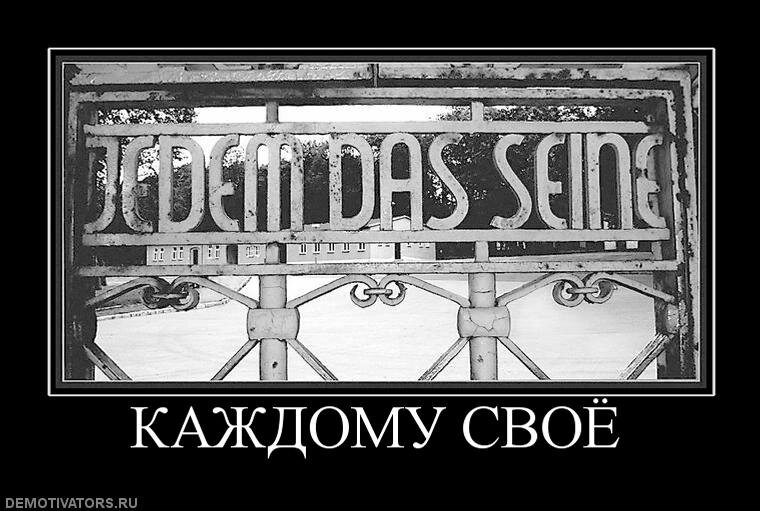 Уже за полночь, когда сон стал обволакивать глаза липучей паутиной, внезапно, слух обожгла колюще-режущая фраза из ТВ-ящика: «Каждому свое!»