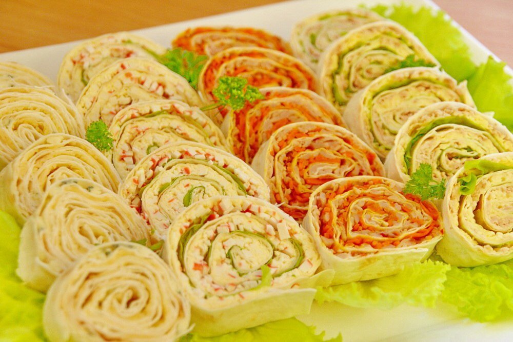 Легкая и необычная закуска из тонкого лаваша прекрасно украсит Ваш стол. А тот факт, что можно выбрать любую начинку, поможет удовлетворить потребности каждого Вашего гостя! В этой статье разберем рецепт рулета со слабосоленой семгой, а в конце приведем примеры других начинок на Ваш выбор. Вам понадобится: Лаваш тонкий 2 шт. Семга слабосоленая 0,4 г. Йогуртная заправка 0,2 г. Свежая зелень Сыр твердый 0,3 г. Рыбу выбирайте по своим предпочтениям, но рекомендуем остановится на сортах красной: форель, семга, горбуша. Для того, что бы рулет не был сухим, мы выбрали йогуртную заправку, как вариант, можно рассмотреть: майонез, сметану, соус собственного приготовления. Итак, рыбу разделываем(если Вы приобрели целую), нарезаем небольшой соломкой вдоль. Сыр трем на крупной терке. Зелень мелко режем. На столе раскладываем один лист лаваша, мажем его соусом, по всей площади раскладываем рыбу на расстоянии 1-2 см. друг от друга. Сверху посыпаем зеленью и сыром. Солить не стоит, рыба уже придаст