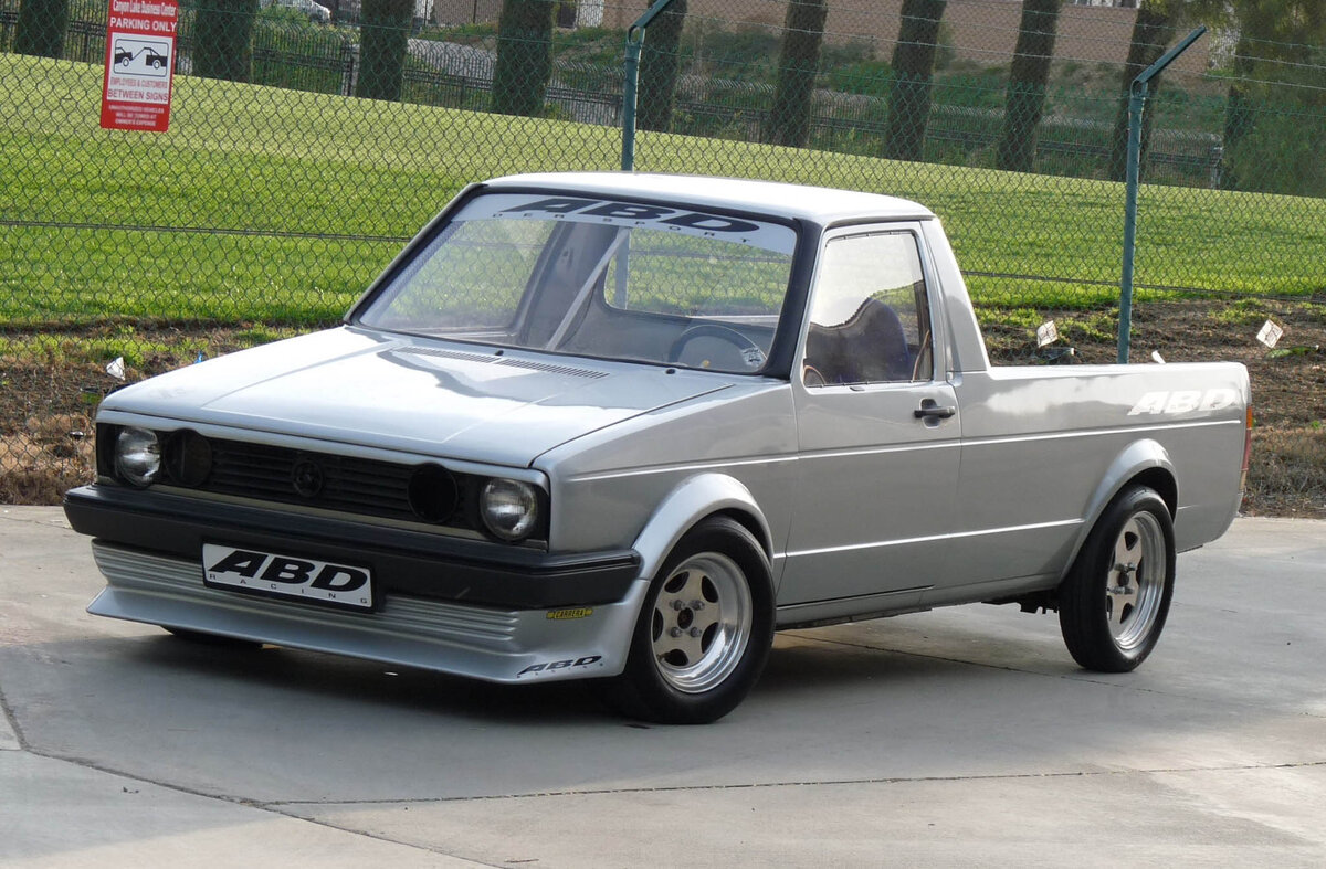 С 1979 года в производственной гамме компании Volkswagen имеется легкий коммерческий пикап Caddy. В сегодняшней публикации я покажу один из первых экземпляров 1980 года выпуска, который прошел глубокий тюнинг. Машина была полностью переделана, чтобы участвовать в дрэг-заездах. Перестройкой этого Volkswagen Caddy занималась студия тюнинга ABD. В машине был изменен практически каждый элемент, способный положительно повлиять на результат гонки. Особое внимание было уделено механической части. Под капотом у этого болида установлен 2,1 литровый 16-ти клапанный мотор с двумя карбюраторами Solex. 5-ти ступенчатая механическая коробка передач взята от MkII Golf GTI. Все это получилось настроить так, что машина проходит четверть мили за 12,9 секунд. Для сравнения, стандартный Ford Mustang в такое время не укладывается. Такого хорошего результата удалось добиться не только при помощи мощности. Были проведены капитальные работы по снижению веса автомобиля. Взгляните на салон Caddy - из него было