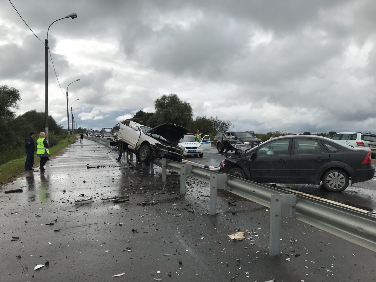 Авария со смертельным исходом произошла сегодня днём на подъездной к Великому Новгороду за Синим мостом. Как сообщили в главном управлении МЧС по Новгородской области, столкнулись автомобили «Форд» и «Тойота». Японскую иномарку отбросило на ограждения. Её водитель погиб. Находившегося за рулём «Форда» мужчину с травмами доставила в больницу «скорая помощь». Обстоятельства случившегося уточняются. Все публикации «Пароход Онлайн» – на сайте издания