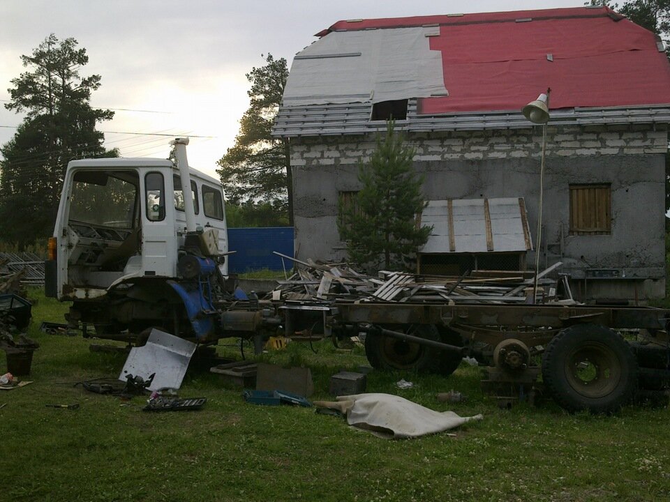 Всё началось с поломки отцовской VOLVO F609 1977 года, сгнил блок в месте стыковки с гильзами, встал вопрос где искать?Ведь грузовик не очень новый, да и не самый популярный. Посмотрев, объявления на различный сайтах по продажам,увидели что есть авто, стоит в 500 км. от дома, уже 2-3 года точно, по приемлемой цене 30,000руб, было решено, что нужно брать. Приехав, увидели торчащую кабину в сугробе, потихоньку собрались заводить, машина завелась как не странно без проблем, уже тогда подумали что машина мало ездила т.к и кабина была в не плохом состоянии. Но решили не рисковать и не ехать сразу на ней, изготовили сцепку и притащили домой. Машина стояла и ждала окончания зимы, и окончания школы сына, сразу же после окончания, вместе с отцом начали сразу же работу над Volvo, после зимы все выглядело печально, но стремление было к ремонту и следовательно все будет сделано.