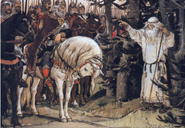 Особое положение в иерархии Русских князей занимает фигура Вещего Олега. Он был родственником легендарного князя Рюрика, братом его жены Ефанды, а еще именно ему Рюрик оставил на попечение своего 2-х летнего сына Игоря. Первый князь Киевский? Не так прост Вещий Олег, как говорят о нем учебники и поэты. Собственно он и был первым князем Киевской Руси из новой варяжской династии, хотя к династии имел весьма косвенное отношение. Рюрик-то скончался в 879 году, за два гола до того, как Олегом убиты были киевские князья Аскольд и Дир. Рюрик в Киеве никогда не бывал, так что город принадлежал Олегу именно по праву сильного. Из источников мы знаем, что Вещий Олег скончался в 912 году, передав управление княжеством своему воспитаннику Игорю. На минуточку, если он был всего лишь регентом при Игоре, то почему ждал и тянул с передачей власти "дитятке" до его 35-ти летия? Скорее всего он был по княжескому статусу не ниже Рюрика и не собирался отдавать власть сыну своего шурина до последних дней. Же