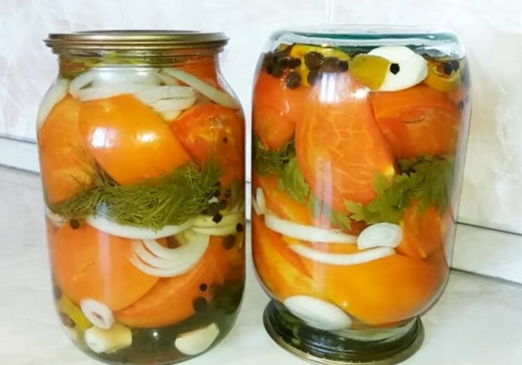 Привет друзья! На участке спеет много помидор, и в ближайшее время будем готовить различные изыски. Обязательно подпишитесь, чтобы не пропустить! И сегодня, хочу поделиться вкусным рецептов резаных помидор с луком и чесноком. Получается вот такая прелесть: Скажу сразу — рецепт прост в исполнении, и если даже будете делать его впервые, Всё получится! Для приготовления можно использовать томаты любого размера и сорта, так как их можно разрезать на любые кусочки, чтобы они поместились в литровую банку. Ингредиенты: Этих ингредиентов хватит на 2 литровые банки. Подробное пошаговое приготовление Репчатый лук нарезать кольцами средней толщины. Для одного литра нам понадобится 1 головка. Помидоры нарезать на несколько частей, в зависимости от их размера. Обязательно отрезать место, где была плодоножка. Банки нужно помыть с содой, затем простерилизовать вместе с крышками любым удобным способом. В каждую посуду добавить по 3 зубчика чеснока, который необходимо почистить и помыть холодной водой