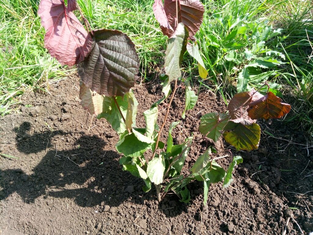 Покупая этот саженец, узнала одну интересную вещь. Вы наверное видели, что орешники бывают зелеными, а бывают краснолистными, как у меня. Если основная цель посадки фундука - урожай, то следует выбирать сорта с зелеными листьями. Они лучше плодоносят. Краснолистная лещина является хорошим опылителем, но плодов дает в разы меньше.