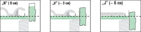 - на различной глубине (три уровня посадки): N (0 см), V (-3 см), J (-6 см)