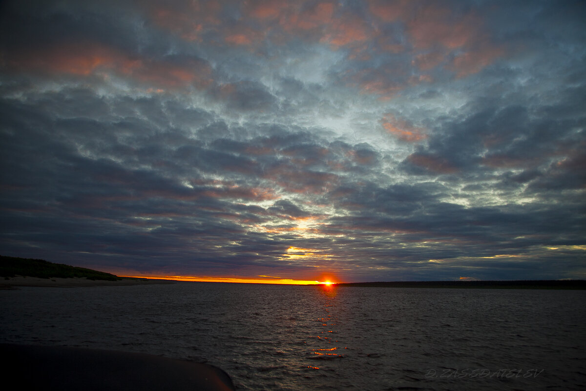 Опять закат, который не полностью закат- полярный день однако. Кто-то спит, кто-то на вахте, идём на дырчике. Следующая остановка устье Нижней Тунгуски, село Турухтанск. Здесь нам надо подзаправиться и топливом и провизией. Что не говори, а народ в сёлах отличается и если в предыдущих люди были достаточно веёлые и приветливые, то Турухтанск показался мрачноватым. Много времени не потратили, быстро решили свои вопросы, прыгнули в катер и поехали ловить! Наш местный абориген, один из Дмитриев, как помните, раньше здесь работал, по этому знает рыбные места! Пока идём до заветных мест, у меня сдувает забытую мной на леере джерси, теперь я буду не так заметен, звездой останется только Дима. Встаём на курс. Юрий ловит на Орбит 150, я ставлю Танцора 110, Дима Уперался в Рапалу, периодически меняя одну приманку на другую, то дипы, то с седловидной лопатой. Дмитрий (капитан) ловил на составник, честно говоря не помню бренд, но это была большая, около 150 мм (вроде тоже рапала). Мы сплавляем